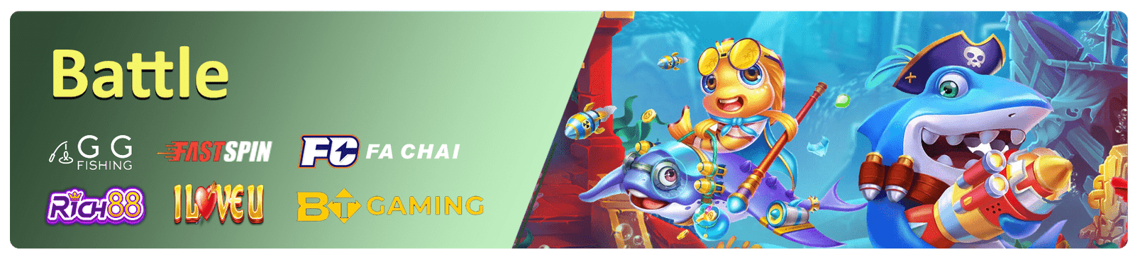 ရွေးချယ်စရာများစွာရှိတဲ့ Provider တွေထဲကမှ တစ်ခုကိုရွေးလိုက်တာနဲ့ အဲ့ဒီ Provider ကထုတ်လုပ်ထားတဲ့ ငါးပစ်ဂိမ်း ရွေးချယ်စရာတွေ အများကြီးရှိနေပါသေးတယ်။ မတူညီတဲ့ ရေအောက်ပတ်ဝန်းကျင်တွေ၊ ဆန်းပြားတဲ့ လက်နက်တွေနဲ့ ဆွဲဆောင်မှုရှိတဲ့ ဆုကြေးငွေများကို ရရှိနိုင်မယ့် ငါးပစ်ဂိမ်းမြောက်မြားစွာကို တစ်နေရာထဲမှာ ဆော့ကစားနိုင်မှာပဲ ဖြစ်ပါတယ်။