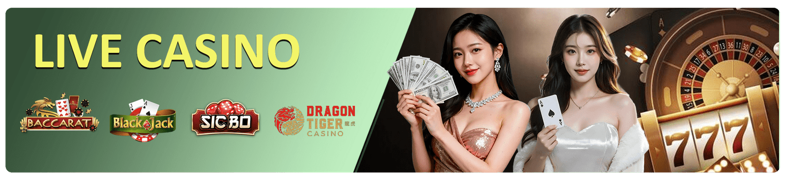 Baccarat, Roulette, Blackjack တို့ကို ကာစီနိုတစ်ခုရဲ့ မပါမဖြစ်ဂိမ်းအားလုံးကို ကစားနိုင်မှာဖြစ်ပြီး ကစားဝိုင်းတိုင်းမှာလဲ ရုပ်ရည်ပြေပြစ်တဲ့ မမတို့က ကျွမ်းကျွမ်းကျင်ကျင် ဦးဆောင်ပြီး ကတ်များကို ဝေပေးသွားမှာ ဖြစ်ပါတယ်။ ဒီလို ကျွမ်းကျင်တဲ့ တင်ဆက်မှုတွေကြောင့် ပွင်းလင်းမြင်သာမှုရှိတဲ့ ကစားပွဲတွေနဲ့အတူ စစ်မှန်တဲ့ ကစားပွဲအတွေ့အကြုံကိုလည်း ကစားသမားတိုင်း ခံစားနိုင်ဖို့ အာမခံပါတယ်။